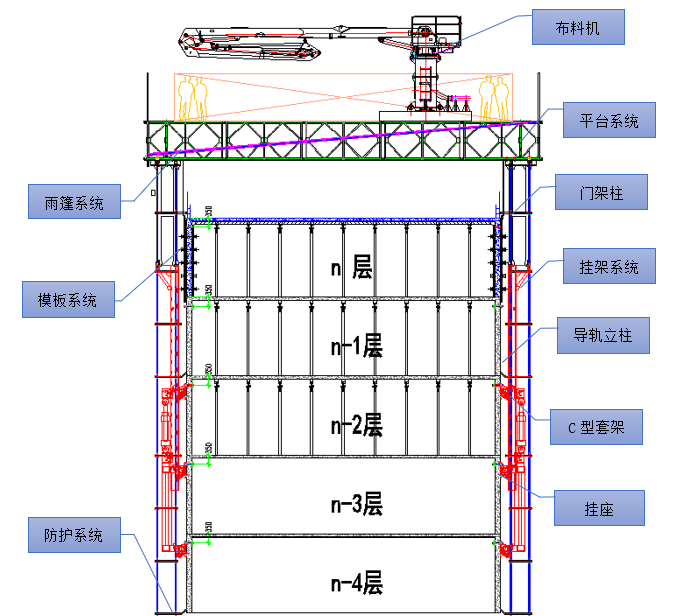▲“住宅造樓機(jī)”系統(tǒng)組成剖面圖