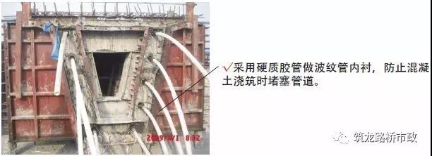1) 在鋼筋綁扎過程中,應(yīng)根據(jù)設(shè)計(jì)精確固定波紋管和錨墊板位置。