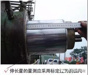 3) 張拉采用張拉力與伸長量雙控制的方法,不能直接量取千斤頂?shù)挠透鬃兾涣?,一般采用兩端?duì)稱張拉,張拉計(jì)算公式按L實(shí)=L-L1+(L1'-L1)(L1張拉至20%ok(15%ok)時(shí)千斤頂?shù)幕钊L;L張拉至100%δk時(shí)千斤頂?shù)幕钊L;L1'張拉至40%δk(30%δk)時(shí)千斤頂?shù)幕钊L)。